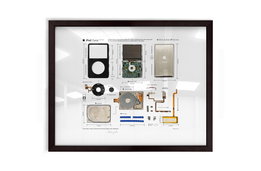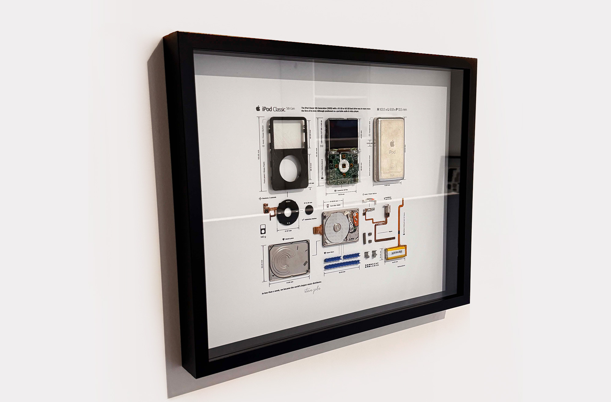 Tous nos cadres vitrines sont fabriqués à la main et composés de produits ou pièces d’origine avec une volonté assumée de recycler vos objets hi-tech, avec une démarche Artistique, s’inscrivant dans un design sobre et monochrome. De ce fait, tout nos cadres vitrine sont unique et peuvent avoir un rendu différent en fonction des arrivages.