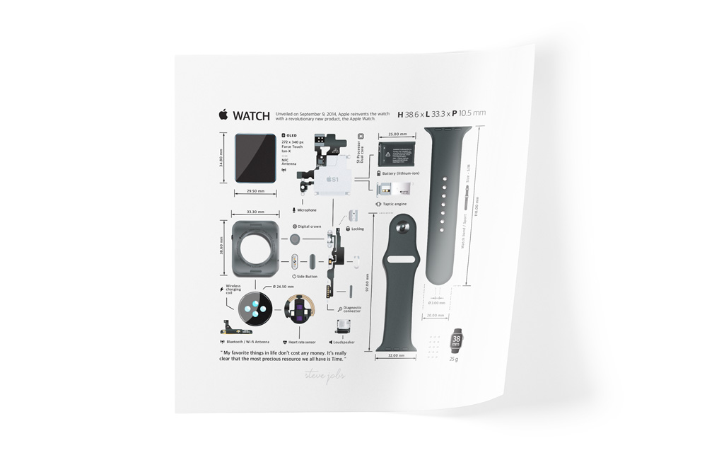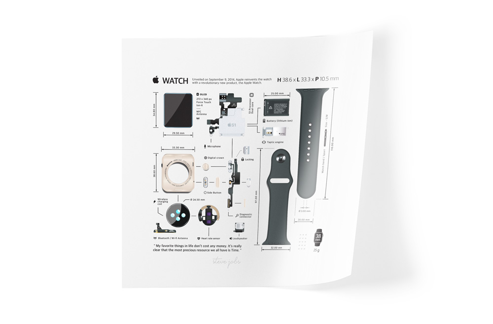 Affiche de qualité haute définition au format 40×50 cm de l’Apple Watch S1 / 38mm de première génération à l’échelle 1:1.
